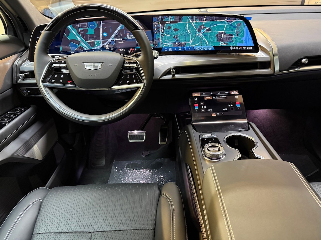 Wireless charging, front row 2 wireless charging pads for phone and portable devices, Wipers, front intermittent, Rainsense, Wiper, rear intermittent, Wi-Fi Hotspot capable (Terms and limitations apply. See onstar.com or dealer for details.), Wheels, 21" (53.3 cm) Diamond Cut with Medium Android finish and Carbon Flash Metallic inserts, Wheel moldings, High Gloss Black, painted, Wheel lugs, locking, Visors, driver and front passenger illuminated sliding vanity mirrors, Vehicle-to-home (V2H) all V2H-capable GM EV's can provide power to your properly equipped home in a blackout (The GM Energy PowerShift Charger and GM Energy V2H Enablement Kit requires an adequately charged and properly equipped GM EV having bidirectional charging capabilities, a properly equipped home, and proper grid interconnection. Some eligible 24MY EVs will require a dealership or over-the-air update to enable bidirectional charging. Weather conditions, life of the battery, vehicle variation and usage, and other external factors may impact the duration of power supply. Power supply may be interrupted. It is not recommended that the following devices be powered with the GM Energy PowerShift Charger and V2H Enablement Kit: Medical Devices.), USB ports 7 total, type-C, 2 front; 2 second; 2 third rows and 1 center console. This Cadillac VISTIQ has a strong Electric engine powering this Automatic transmission.
