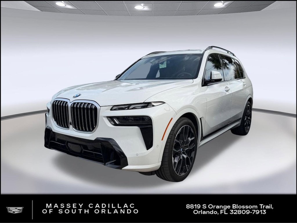 This 2025 BMW X7 xDrive40i (***ONE OWNER, CLEAN CARFAX***) comes complete with features such as M SPORT PACKAGE, Navigation System, Blind Spot Monitor, Front Collision Mitigation, Cross-Traffic Alert, Lane Departure Warning, Automatic Parking, Heads-Up Display, Back-Up Camera, Panoramic Roof, Heated Steering Wheel, Heated Front Seats, Power Folding Mirrors, Aerodynamic kit, and much more! This is a One Owner Clean Carfax vehicle. Our website is updated daily to make sure our online inventory is as accurate as possible. The prices online are the same prices that you will find at our dealership. You won't find any funny business at Massey Cadillac! We value your time and rely on our team to make sure everyone has a stress free and hassle free experience. With thousands of Happy Customers Massey Cadillac is one of the Top Cadillac dealers in the nation. Don't settle for less when you can work with a dealer that genuinely cares about giving you the most transparent car buying experience of your life! Call us at 866-939-5521 to verify any information and schedule your test drive. This vehicle is located just south of the Florida Mall at 8819 S. Orange Blossom Trail Orlando, FL.